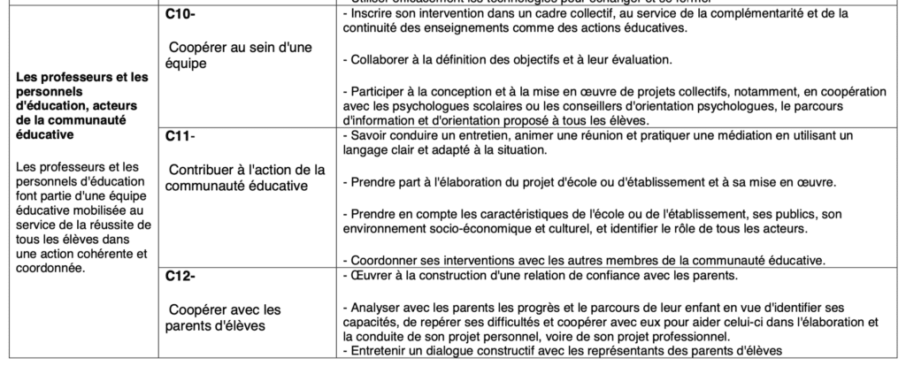 - La compétence n°10 du référentiel des compétences des enseignants :