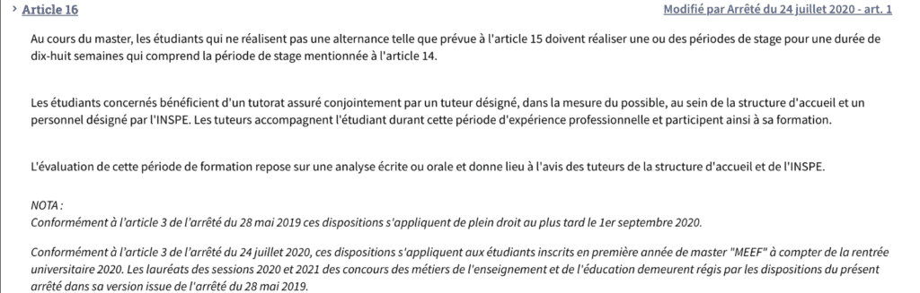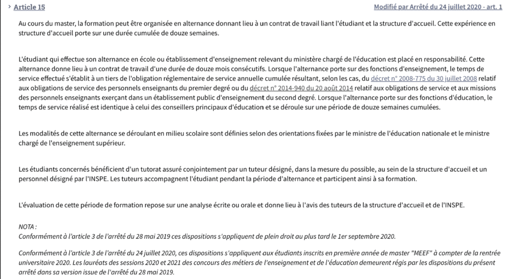 - L’arrêté du 27 août 2013 fixant le cadre national des formations dispensées au sein des masters « métiers de l’enseignement, de l’éducation et de la formation » :