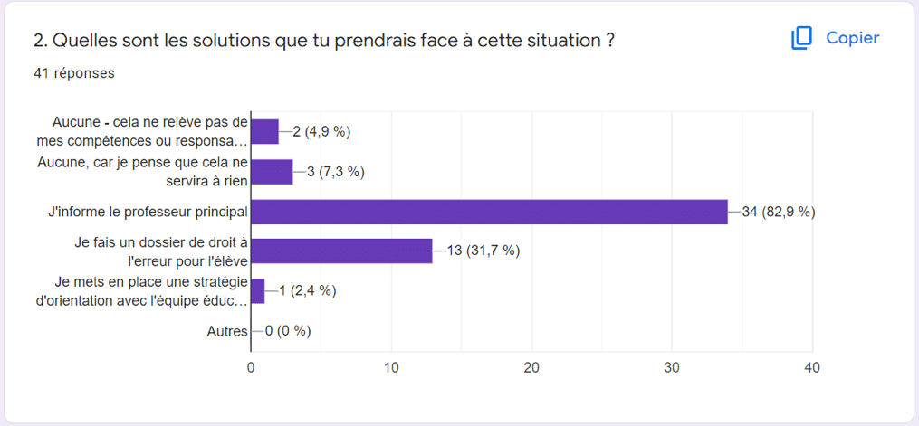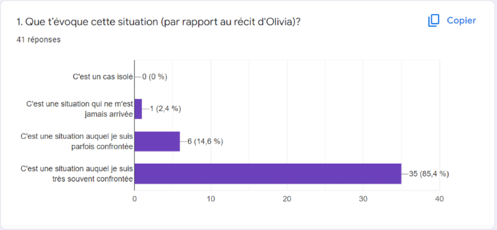 Suite à cet échange, j’ai informé le professeur principal de cette situation. Tous deux avons échangé avec la famille pour essayer de comprendre un peu plus cette situation et trouver des solutions pour Olivia.
