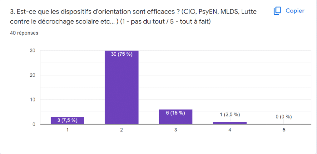 - La vision claire qu’a l’élève de ses possibilités d’orientation, et donc les défaillances dans les pratiques actuelles sur l’orientation des élèves.