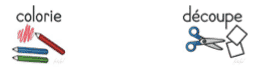 • Les pictogrammes jaunes correspondent aux activités autorisées une fois l’atelier terminé (dessin, coloriage, lecture, puzzle…)