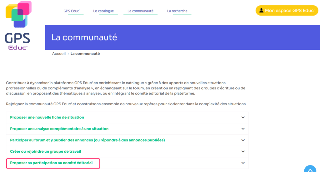 Rendez-vous sur la rubrique « La communauté » puis cliquez sur la section « Proposer sa participation au comité éditorial ».